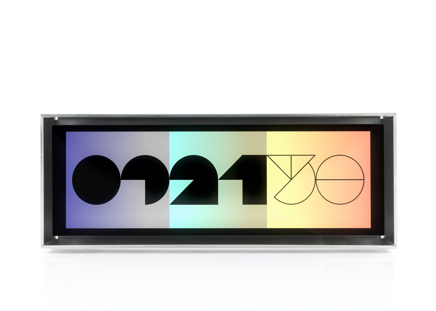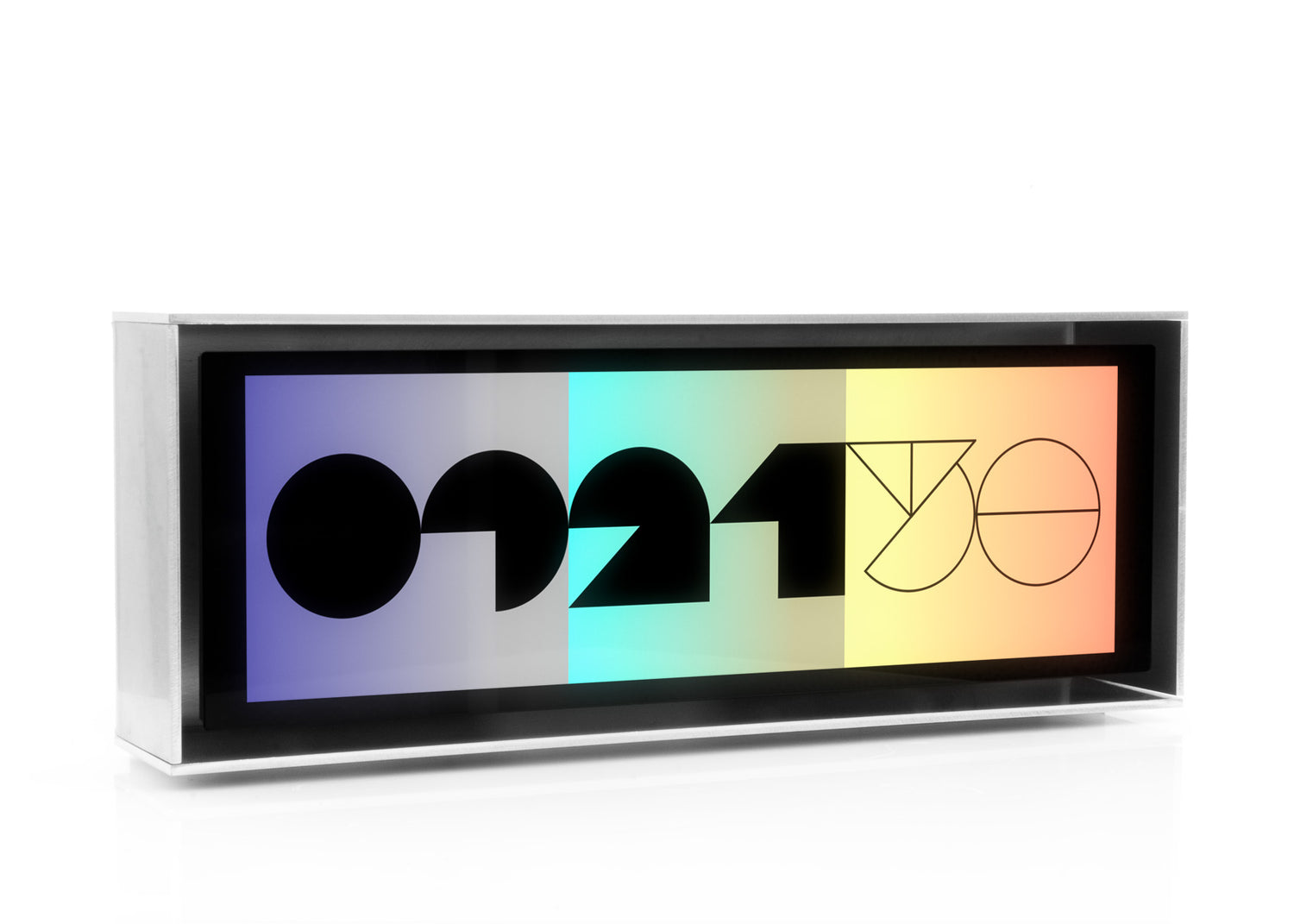 A modern take on a classic concept. This clock showcases the passing of time using forever changing shapes and colours, creating unique compositions as time unfolds. A collaboration with Sigrid Calon.